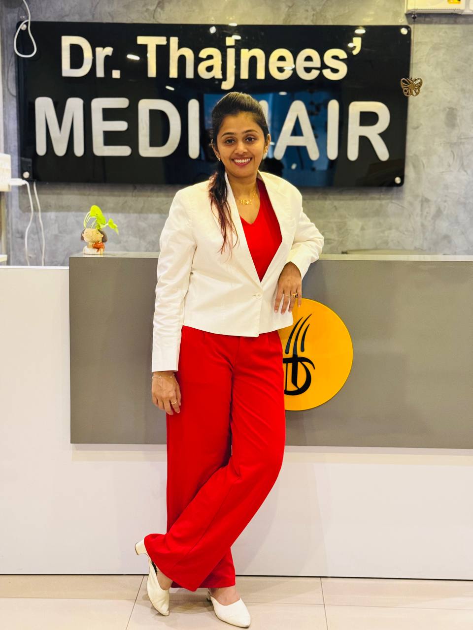 Dr. Thajnees is a dedicated hair restoration doctor with 10+ years of medical experience, specialising in hair transplant and aesthetic hair treatments. She is known for her calm, ethical, and patient-first approach, making patients feel comfortable and confident throughout their treatment journey.